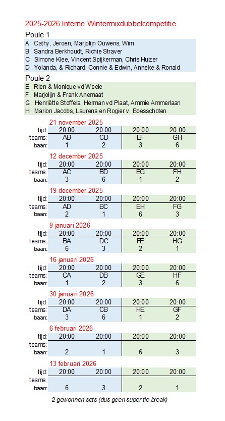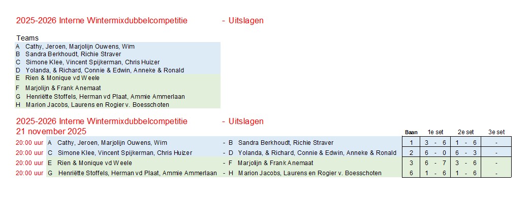 Het programma en de uitslagen vind je in de bijlagen/afbeeldingen.